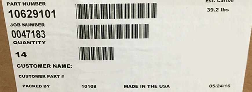Techtrack Systems Inc provides a wide variety of labels and inline label applicators. We provide everything from a simple label output and a manual application, to a engineered solution that integrates a print and automatically apply label integrated into your production line.